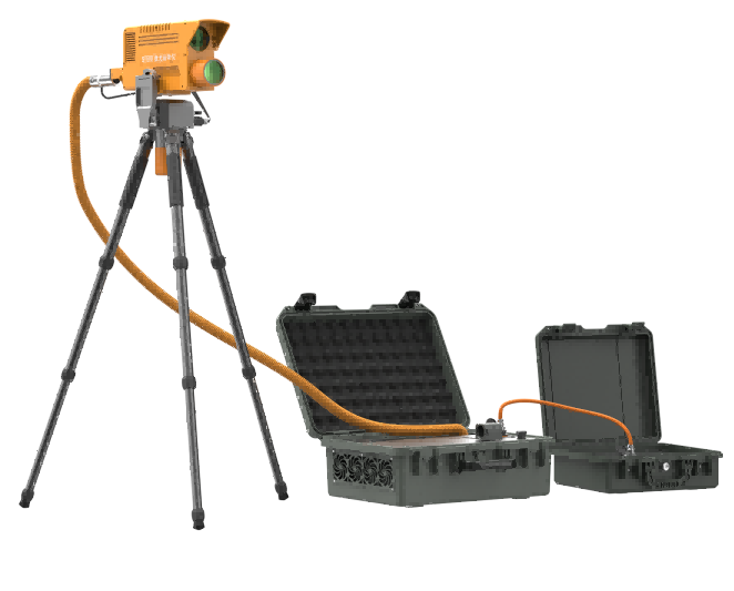 光學(xué)破拆裝置內(nèi)置高能光纖激光器,能夠從地面發(fā)射激光對(duì)鋼板、鋁板、鋼筋、彩鋼瓦、樹木、塑料、馬蜂窩等進(jìn)行遠(yuǎn)距離切割清除。