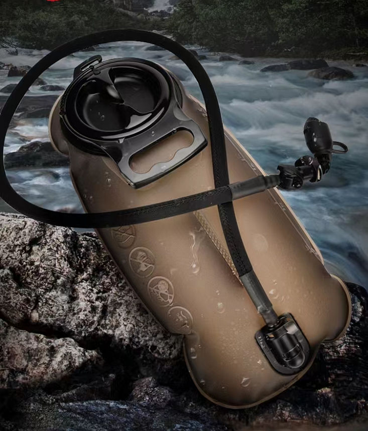 單兵攜行水囊有儲水袋、吸水管、飲水噴嘴組成,三部分可拆卸清洗,材料使用TPU食品級防水材料,具備抑菌殺菌功能,顏色為透明色,儲水袋容積3L,采用雙層網(wǎng)狀電壓融合線,抗壓強度為2000N。另配備可與水囊配套使用背包。