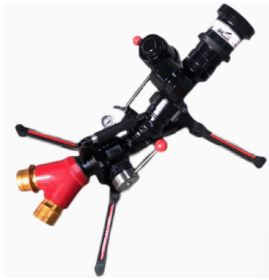 該炮可以手動控制與自擺轉換快速切換,射程遠,配有流量自動調節(jié)炮頭,當流量壓力較小時,仍能保持一定的噴射距離。體積小,移動方便,操作簡便,機動性強,非常適用于各類大中型石油化工生產基地、各類易燃易爆、有毒有害火災、各種大中型建筑的火場搶險救災。炮體采用輕質鋁合金材質,表面硬質陽極氧化后噴漆處理;炮腳鍛造鋁合金材質黑色氧化處理,4只支撐腳可折疊便于存放,拉開腳撐可定位作業(yè),且腳撐拉開、折疊都有彈簧卡扣定位.防滑鎢鋼釘,腳撐上都裝有防滑鎢鋼釘,防止水炮在作業(yè)過程中滑動,配有直桿式開關,可快速開啟或關閉水流;