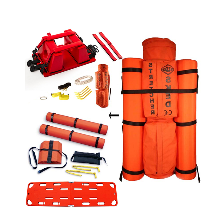 可漂浮救生擔架材質:柔韌塑料制成,強度高、耐磨性??捎糜谒婢仍蜕降鼐仍?;可加設固定扁帶,可防止拖拽造成損壞。高強度把手8個,工作負載:400kg,內置平板式可拆卸浮力輔助系統(tǒng)和脊柱板固定系統(tǒng),方便固定傷員,配備:梅隴鎖1個(主軸拉力45kN、橫軸拉力8kN)、鋼制梨型鉤4個(主軸拉力36kN橫軸8kN)、垂直豎井提升繩1套、浮力輔助部件和脊柱板一套。擔架浮力:1.6kN。