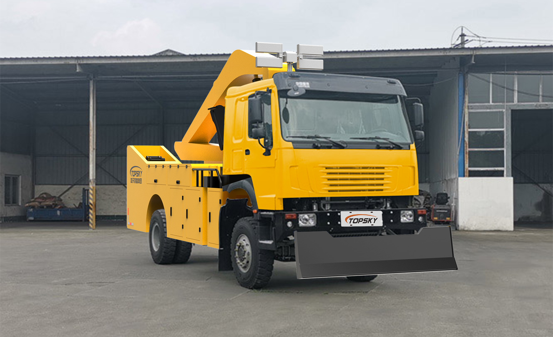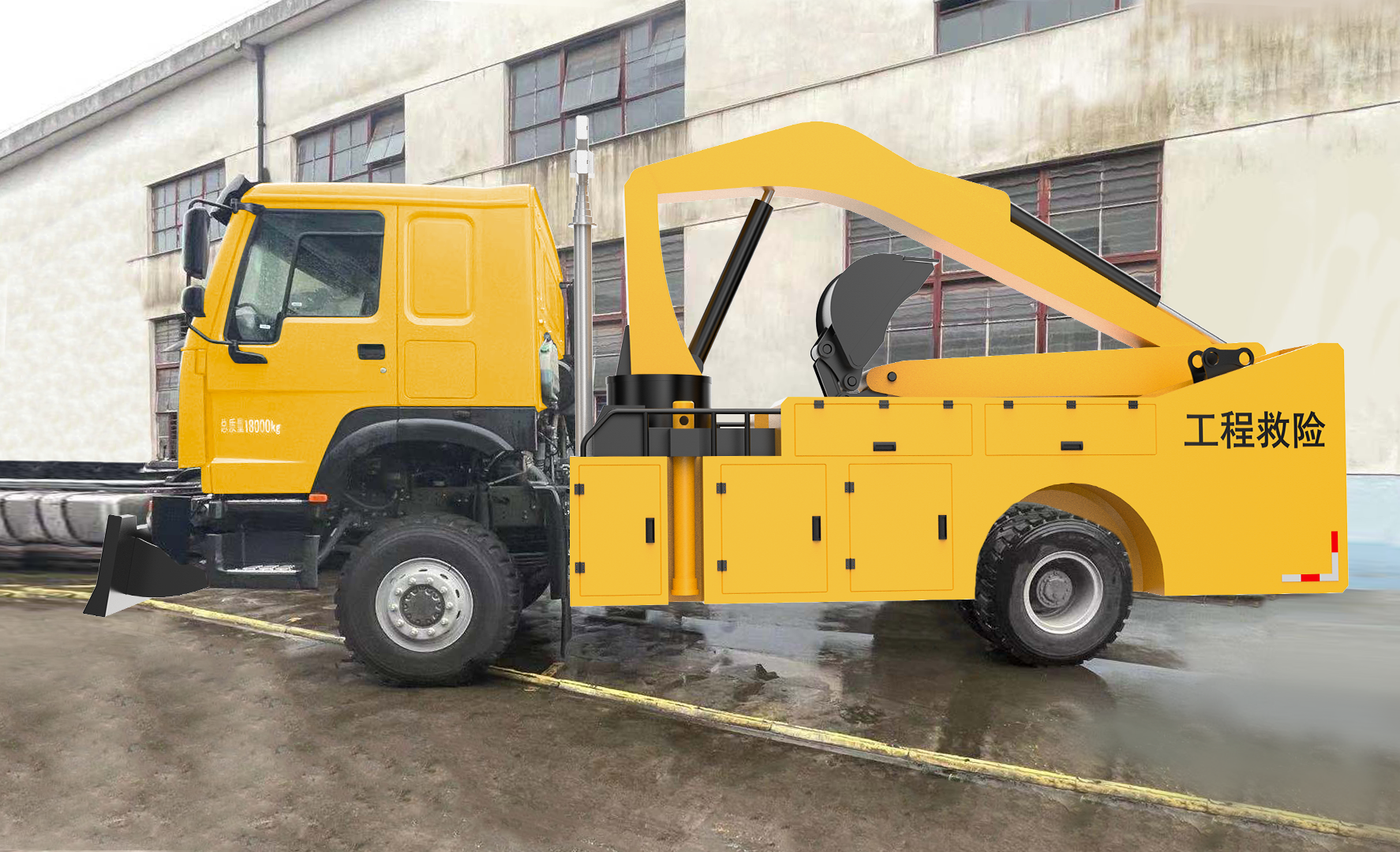 車輛配備舉升臂架、挖斗、破拆錘、抓斗、推鏟、牽引絞盤、發(fā)電機組、升降照明燈等搶險裝備,實現(xiàn)多種場景的救援作業(yè);