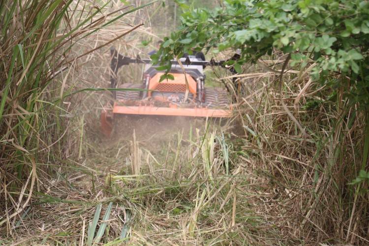 森林隔離帶開辟車是由隔離帶開辟機模塊、大型鈍刀式切削模塊、重型林木抓斗、鏟斗、快換機構(gòu)、履帶式行走機構(gòu)、臂架舉升裝置、駕駛室、電氣液壓系統(tǒng)和無線遙控器組成。設(shè)備應(yīng)采用雙三角形履帶式行走機構(gòu),具備建造防火隔離帶的能力,可粉碎樹 木、灌木、草等各種可燃性植物,能在茂密的樹林、灌木林、草原中迅速開辟防火隔離帶??煞鬯榈臉淠局睆?/span>≥ 250mm,連續(xù)粉碎時可粉碎的樹木直徑≥80mm,可粉碎的樹木、灌木和草的高度沒有限制。在山地林區(qū)開辟防火隔離帶、維護防火通道、開辟臨時救援通道、建立安全島、輔助清理火場、開設(shè)生土隔離帶等應(yīng)急救援任務(wù)。
