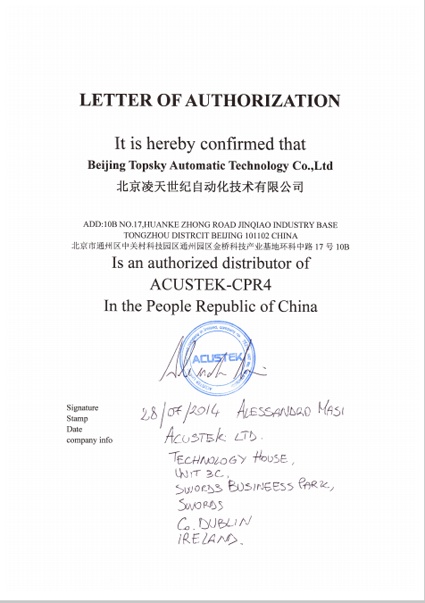 2014年7月28日,北京凌天成為 英國愛爾蘭ACUSTEK 公司 穿墻雷達(dá),門縫窺視儀 一級(jí)代理