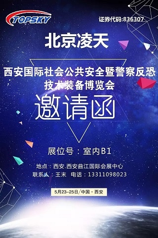 2017年5月23日-25日,西安國際社會(huì)公共安全暨警察反恐技術(shù)裝備博覽會(huì)將在西安曲江國際會(huì)展中心盛大召開。屆時(shí),北京凌天將集中展示警用無人化作戰(zhàn)系列裝備、偵查反偵查、安檢排爆、反恐處突等系列高精尖警用裝備。