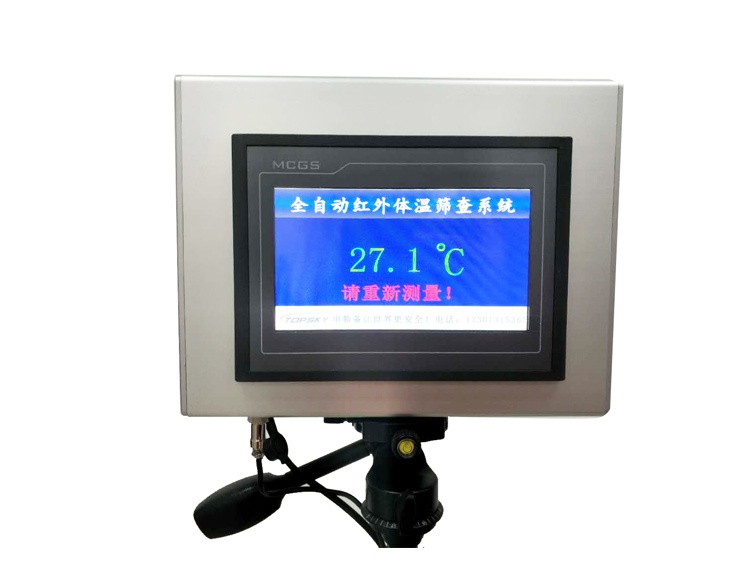 全自動紅外體溫篩查系統(tǒng)是由非接觸式紅外探頭,傳感器,光 學系統(tǒng),智能檢測控制系統(tǒng),高清7寸觸摸顯示屏等部分組成.能夠 在不接觸人體的情況下,依據(jù)人體發(fā)射紅外輻射強度,轉(zhuǎn)換成實際 的溫度數(shù)值,并通過人機交互界面進行顯示和報警.高清屏幕顯示, 可保證測量結(jié)果清晰可見,高溫聲光報警有助于工作人員快速篩 查可疑人員;該產(chǎn)品可以同三腳架搭配 使用,方便攜帶和快速部署,可應用于機 場、港口、車站、學校、賓館和醫(yī)院等 公共場所的體溫篩檢;