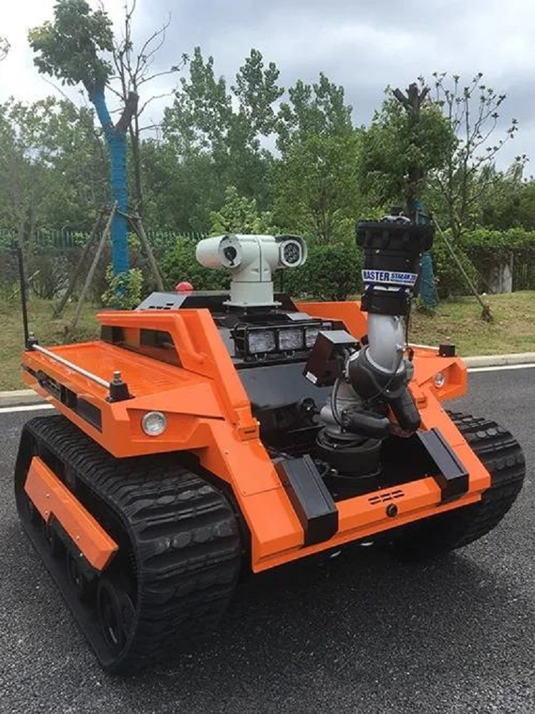 RXR-M150D消防滅火機(jī)器人作為特種機(jī)器人的一種,采用柴油發(fā)動(dòng)機(jī)作為動(dòng)力源,使用無(wú)線遙控的方式遠(yuǎn)距離操控消防滅火機(jī)器人。該機(jī)器人主要由機(jī)器人本體、大流量水炮、視頻偵察、有毒有害氣體偵察、遙控終端組成。適用公(鐵)路隧道火災(zāi);地鐵車(chē)站與隧道火災(zāi);地下設(shè)施與貨場(chǎng)火災(zāi);大跨度、大空間場(chǎng)所火災(zāi)。