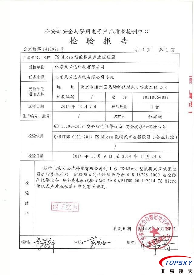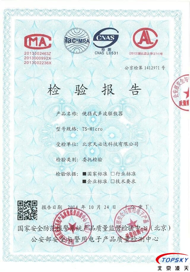 TS-Micro便攜式噪聲驅(qū)散器通過(guò)公安部權(quán)威機(jī)構(gòu)檢驗(yàn)
