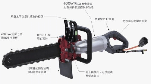 配備了6600W高頻永磁同步馬達(dá)的水泥鏈鋸,非常適用于大深度切削和無過度切削的精確切角!