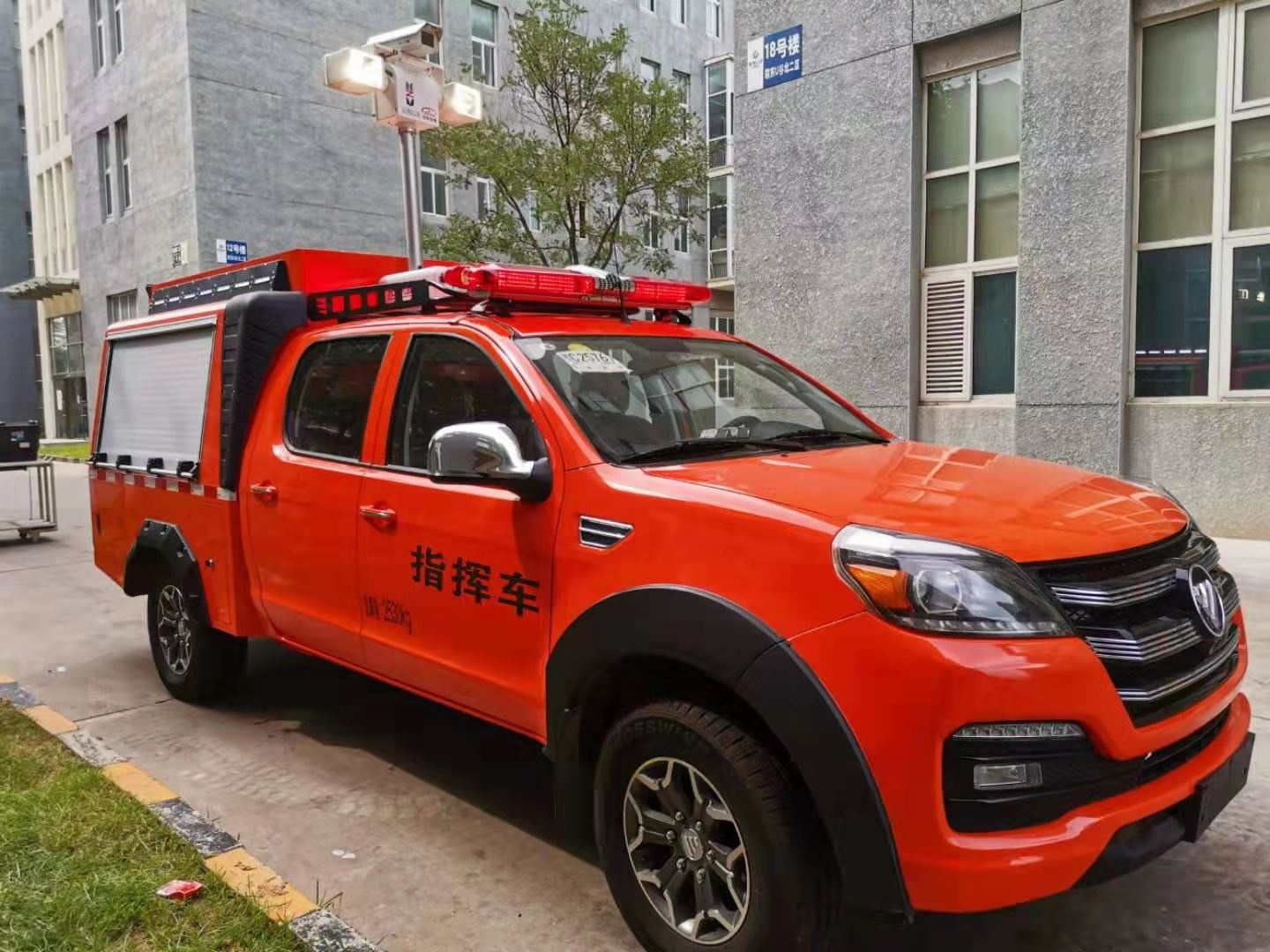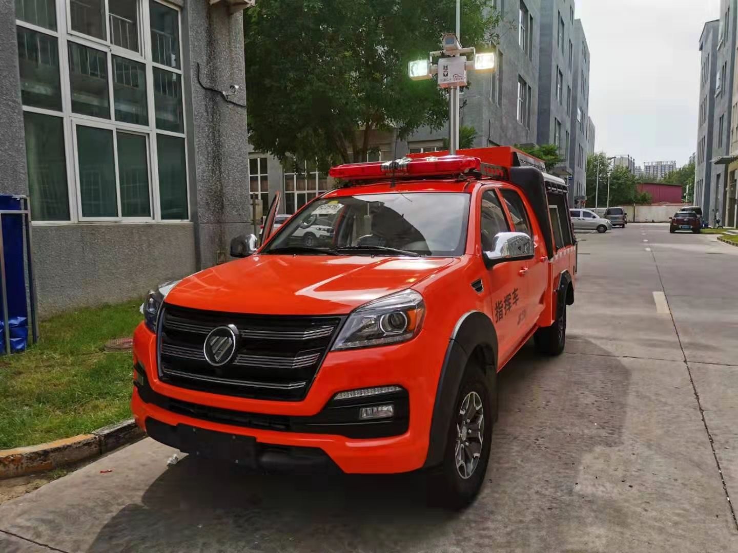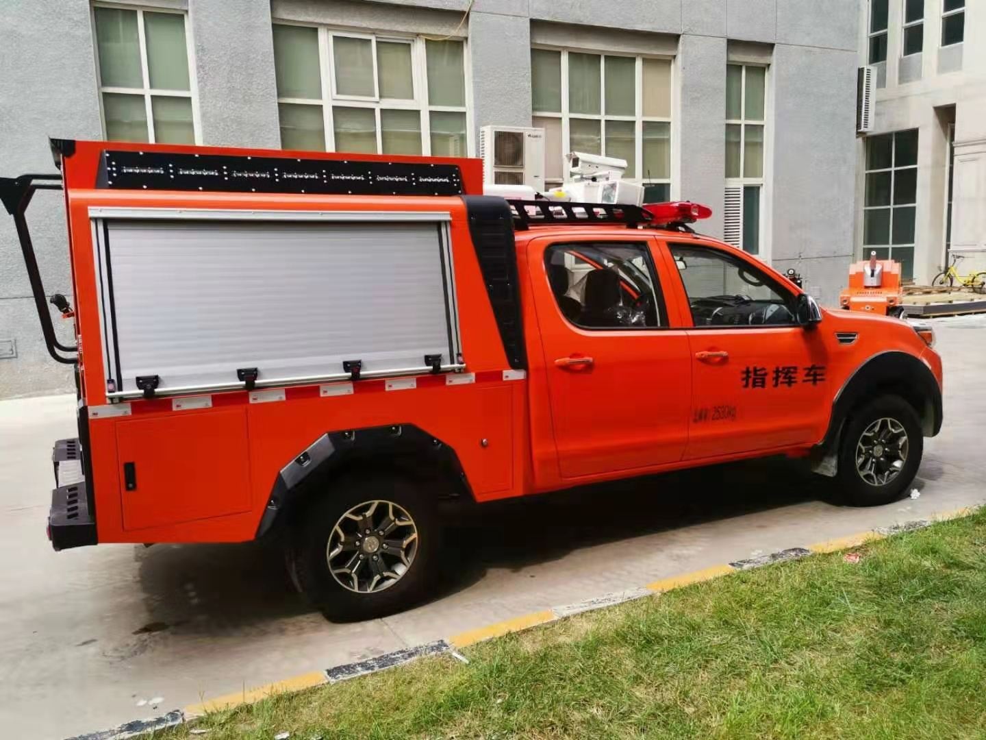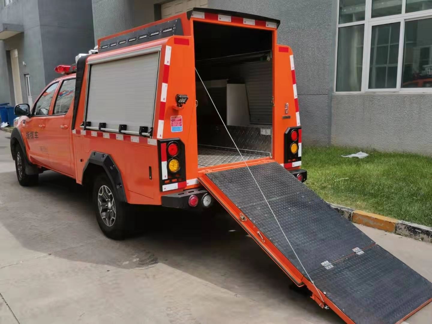 專門為特種機(jī)器人量身定做的一款機(jī)器人運(yùn)輸車,由皮卡車改裝,區(qū)別于傳統(tǒng)意義上大型運(yùn)輸車,體積更小,動力更足。車廂設(shè)計有升降照明系統(tǒng),解決了救援現(xiàn)場能見度低的問題,1.2-1.8米升降高度,可滿足不同照明需求。車體頂部裝有4G圖像傳輸系統(tǒng),可將現(xiàn)場情況實時傳輸?shù)街笓]部,有利于指揮現(xiàn)場調(diào)度。配有一體化機(jī)器人裝運(yùn)梯,最大承壓≥600Kg。后箱四周配有一圈小型照明系統(tǒng),可用于晚間或光線昏暗等環(huán)境。后箱設(shè)計有獨立儲物架,可放置機(jī)器人配套設(shè)備。兩側(cè)卷閘窗設(shè)計方便拿用。