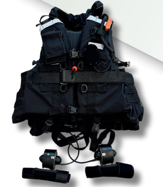 戰(zhàn)術(shù)動(dòng)力激流救生衣是一種集成浮力設(shè)備和動(dòng)力裝置的水面救生輔助裝備,能夠?yàn)榫仍咛峁╊~外推進(jìn)力和穩(wěn)定性,輔助救援人員快速抵近、高效救援,保障作業(yè)安全、提高作業(yè)效率。