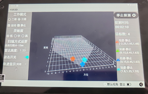 2. ★智能探測:同時探測5個生命體,不同顏色區(qū)分目標(biāo),并智能提示運動、靜止生命體