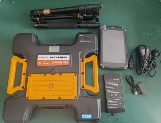 三維雷達(dá)生命探測儀由三維雷達(dá)探測器、操作終端(平板)、三角架、備用電池等組成。