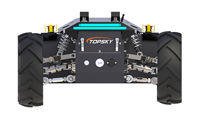 阿克曼輪式機器人底盤底盤采用鋰電池電源作為機器人動力源,使用無線遙控的方式遠距離操控機器人,并可定制復雜的操作模式,主控提供串口/標準CAN總線作為通訊接口。整機采用阿克曼轉向以及前后雙橫臂獨立懸架結構,具有IP65防塵防水能力,能夠在多種復雜環(huán)境運行。同時,整機采用模塊化設計,四獨立懸掛、左右電控箱及電池可快速拆卸維護更換??纱钶d多種設備從而代替人進行高效率作業(yè)。
