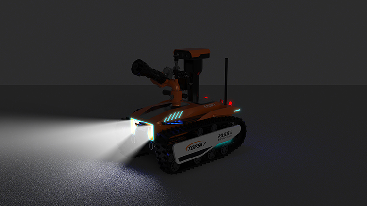 機(jī)器人采用無線遙控設(shè)計(jì),遙控器與監(jiān)視器一體/分離,可實(shí)時(shí)的顯示電池、內(nèi)部的各種信息,機(jī)器人狀態(tài)、現(xiàn)場溫濕度、有毒有害氣體濃度報(bào)警信息等控制機(jī)器人前進(jìn)、后退、轉(zhuǎn)向等運(yùn)動(dòng)。具備遠(yuǎn)程偵察能力,機(jī)身搭建升降云臺(tái)、高清攝像頭、熱成像攝像頭、氣體傳感器三類環(huán)境感知設(shè)備和云臺(tái)控制設(shè)備,也可聯(lián)動(dòng)聲光報(bào)警模塊提醒消防人員或群眾,有效避免危險(xiǎn)。在通過遠(yuǎn)程偵察手段有效獲取現(xiàn)場火源信息后,機(jī)器人配備的大功率電機(jī)可以幫助消防人員將消防水袋拖拽至危險(xiǎn)火源區(qū)域進(jìn)行滅火,并能搭載各類國內(nèi)、外的多種消防水泡,并能夠遠(yuǎn)程控制發(fā)射水或泡沫?;谒鋫涞氖耙裟K和揚(yáng)聲器模塊,拾取現(xiàn)場環(huán)境聲音,即使消防官兵未靠近消防現(xiàn)場也能夠聽到搜救現(xiàn)場的群眾呼救聲,并通過揚(yáng)聲器模塊與群眾進(jìn)行現(xiàn)場對(duì)話。