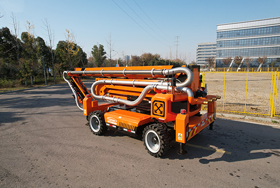 具有液壓調(diào)平支腿,臂架作業(yè)時(shí)保證整機(jī)水平,防止發(fā)生傾翻,以及支腿安全報(bào)警,車體傾斜報(bào)警,舉升避障、舉升限制、上下互鎖、風(fēng)速報(bào)警等安全保護(hù)功能,進(jìn)一步提升機(jī)器人舉高噴射作業(yè)安全性。