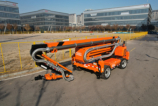 進(jìn)行滅火消防炮噴射作業(yè)時(shí)最大高度可達(dá)20.5米,最大水平延伸可達(dá)11米,實(shí)現(xiàn)凌空對(duì)火場(chǎng)的高空壓制噴射需求。