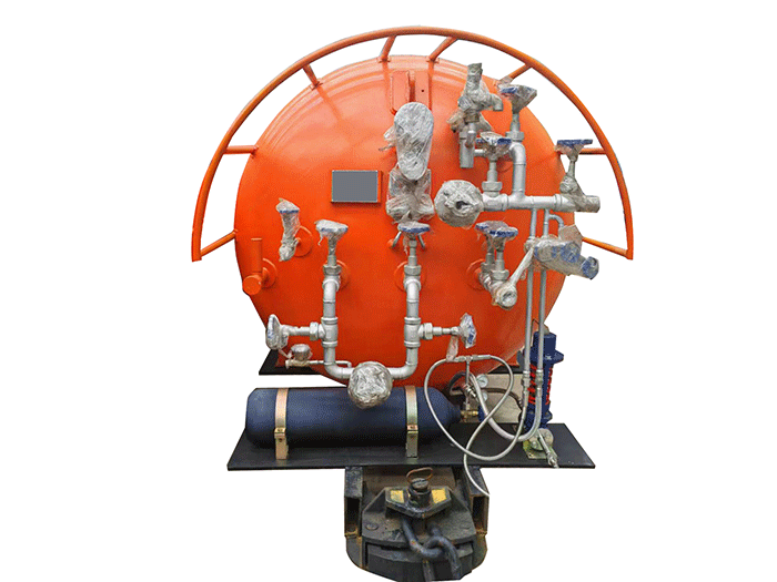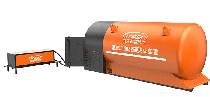 液態(tài)二氧化碳滅火裝置,采用平板車為運載平臺,搭載液態(tài)二氧化碳滅火模塊,采用液態(tài)二氧化碳為滅火劑,運輸至井下火區(qū)近附,經自增壓調控系統(tǒng)實現(xiàn)罐內穩(wěn)壓,并通過遠距離輸送管路將液體從罐內向密閉火區(qū)噴射,利用其急速膨脹氣化和吸熱效率高的物理特性,可實現(xiàn)惰性降氧,吸熱降溫,吸附阻化等功能,從而可快速進行井下煤層自燃火災的預防與撲滅等。