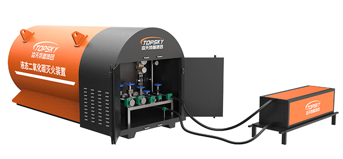 采用液態(tài)二氧化碳為滅火劑,運輸至井下火區(qū)近附,經自增壓調控系統(tǒng)實現(xiàn)罐內穩(wěn)壓,并通過遠距離輸送管路將液體從罐內向密閉火區(qū)噴射,利用其急速膨脹氣化和吸熱效率高的物理特性,可實現(xiàn)惰性降氧,吸熱降溫,吸附阻化等功能,從而可快速進行井下煤層自燃火災的預防與撲滅等。