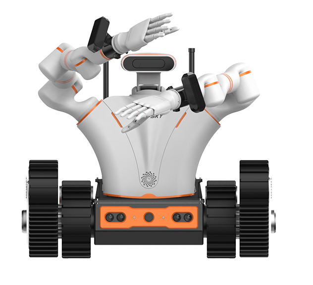2、系統(tǒng)組成:主要由三大部分組成:遙控操作裝置、底盤、具身雙機械臂。