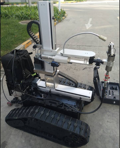 主要是用來處理戰(zhàn)術破拆式機器人,也可用于遠程遙控偵察人難以達到的地形的一種機器人。機器人配備十字滑臺,靈活調動工具的工作位置,可加載手持式切割機,還可以加載獨立電動液壓工具其包括:微型開門器、微型擴張器、微型剪切器之間可以靈活更換,底盤采用履帶結構,能適應各種地形快速作戰(zhàn)部署。 |