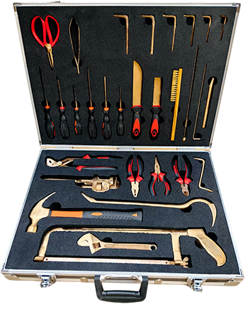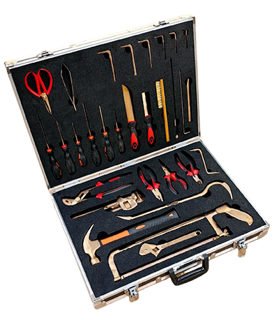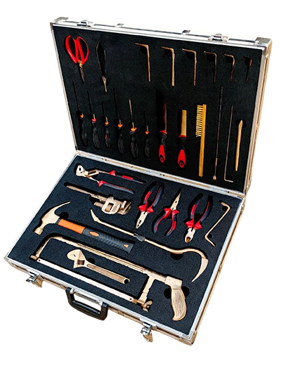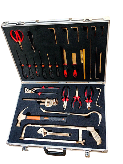 NMT-WA03型號(hào)無(wú)磁排爆工具組通常為36件套。工具由鈹青銅合金制成,裝在堅(jiān)固的硬質(zhì)箱體內(nèi),箱內(nèi)有四個(gè)可拆卸嵌體,便于工具的分類存放與攜帶。
