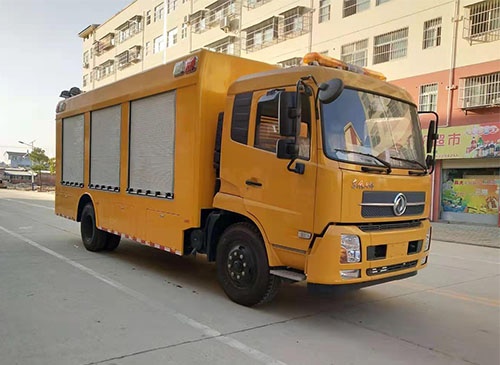 采用東風(fēng)底盤,排半可翻轉(zhuǎn)式駕駛室,帶導(dǎo)流罩,東風(fēng)康明斯發(fā)動(dòng)機(jī),功率132kw,國(guó)六排放標(biāo)準(zhǔn);軸距4700mm;鋼絲輪胎,原廠空調(diào)、原廠液壓方向助力,原廠ABS,原廠隨車工具。最大涉水深度600mm