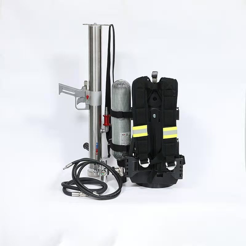 本裝置是將空氣呼吸器和細水霧滅火裝置進行有機組合,既能滿足滅火操作人員方便攜帶進入火災現(xiàn)場進行滅火,又能滿足呼吸需要,且重量配置合理具有背負舒適,操作簡單,維護方便等特點。