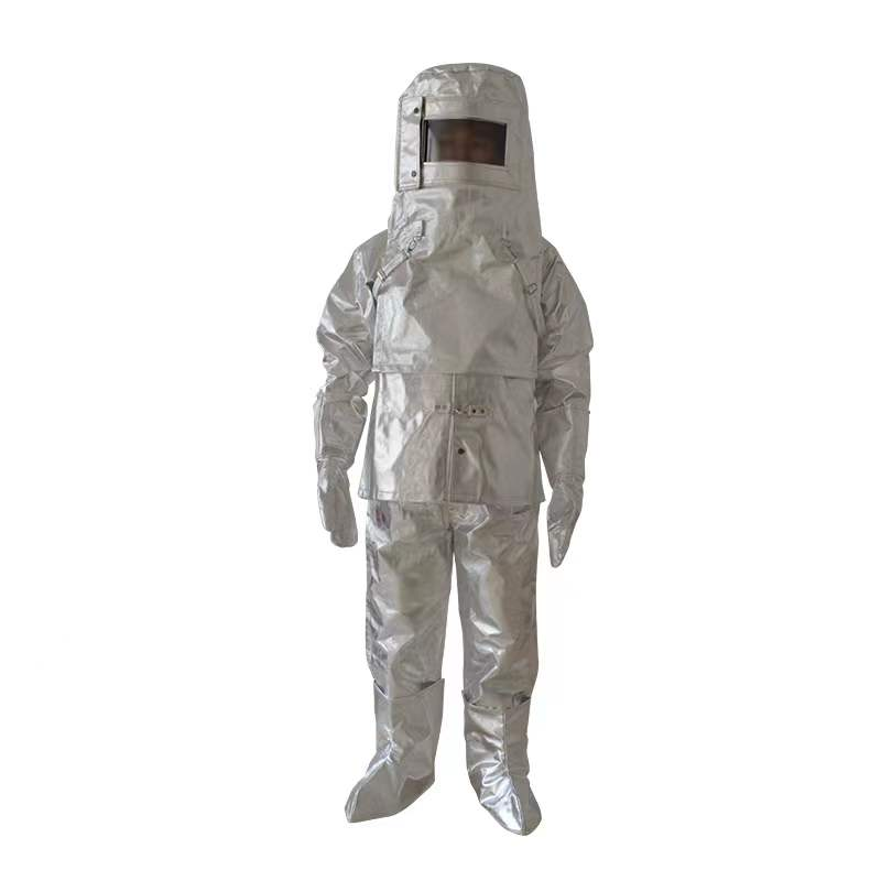 該服裝由鋁箔耐高溫隔熱布、阻燃隔熱:層及舒適層組成,具有耐磨、隔熱、抗輻射熱等性能?;济媪喜缓?、玻璃纖維,具有重量輕、耐高溫、耐折以及對人體無毒害等優(yōu)點,能有效地保障消防隊員和高溫作業(yè)人員不被烈焰、高溫灼傷。是消防隊員在火場及高溫事故現(xiàn)場進行搶險作業(yè)的理想防護服裝。
