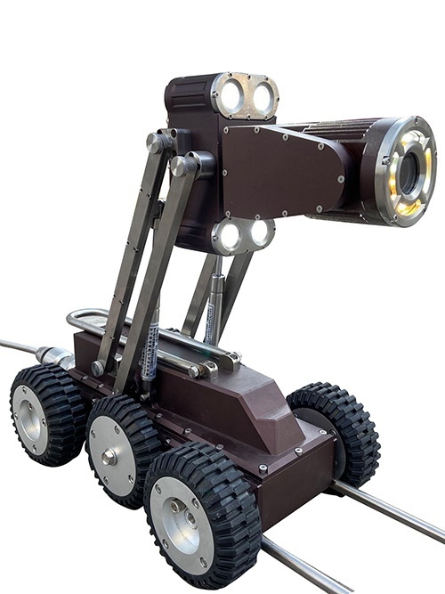 針對煤礦井下發(fā)生事故后,救援人員不能及時了解現(xiàn)場情況的問題,設計并研制了一種鉆孔救援機器人,該產(chǎn)品是由爬行器(攝像頭)、鉆孔自動(手動)盤線車、無線系統(tǒng)控制器 (電腦端)、電源適配器等部分組成,通過操作主控制機器人界面,可實現(xiàn)控制爬行器在孔內(nèi)行走,并將釆集到的救援孔內(nèi)部圖像通過線纜實時傳輸?shù)街骺刂破鬟M行實時監(jiān)視,配合判圖軟件一鍵生成檢測報告。檢測系統(tǒng)還配有專業(yè)的控制軟件,可運行在windowslO系統(tǒng)上控制本套檢測機器人??蛇M行圖像存儲。監(jiān)視圖像時如果發(fā)現(xiàn)人與物體,可以通過錄像或拍照記錄出來以便對其判斷、分析。在主控制器的顯示界面上,可以隨時了解爬行器的狀態(tài),包括傾角、氣壓、距離、速度、平臺高度、日期等相關(guān)信息。該裝置也可用于其他地質(zhì)鉆井探測中,基于礦山鉆孔救援探測需求,針對現(xiàn)有探測機器人信息探測范圍窄、探測距離較短、功能單一、無越障能力等問題,設計出礦山鉆孔救援探測機器人。